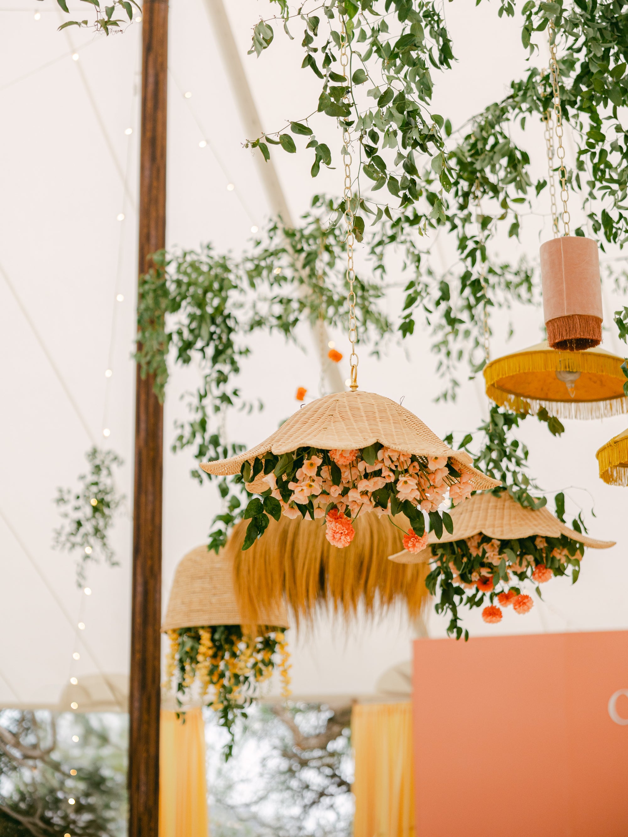 Rattan Floral Pendant - Triple