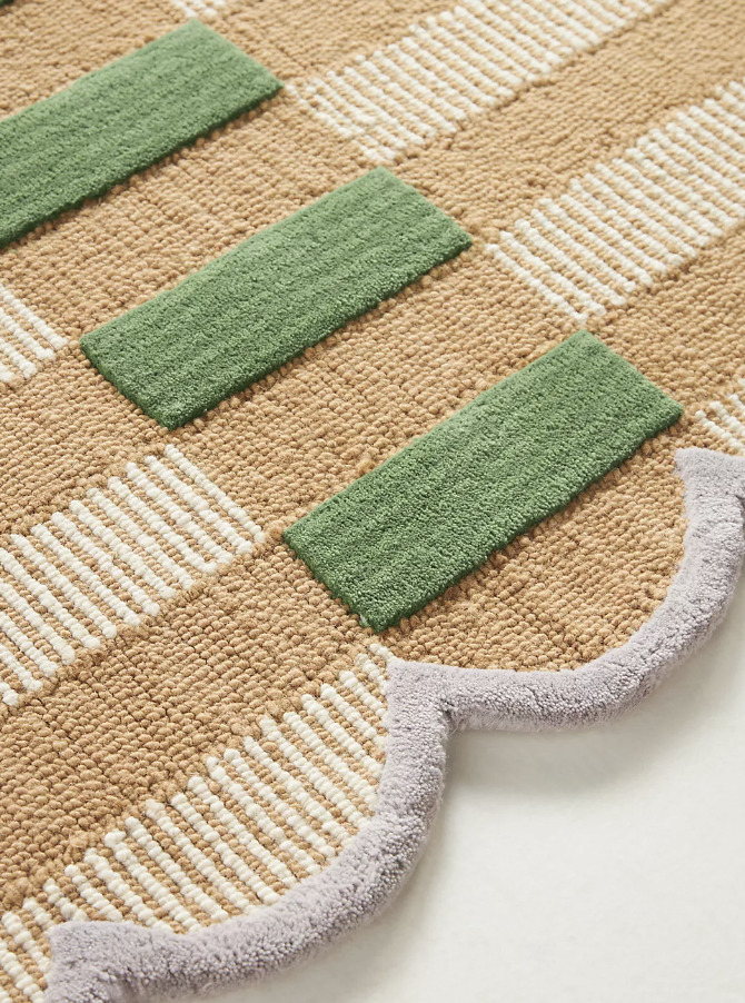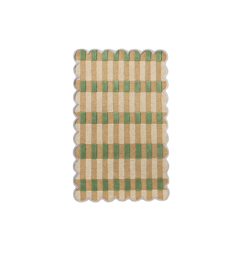Green And Natural Plaid Scalloped Rug