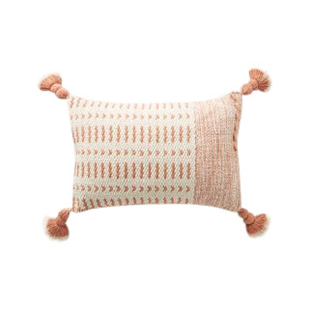 Pink And Cream Woven Tassel Lumbar