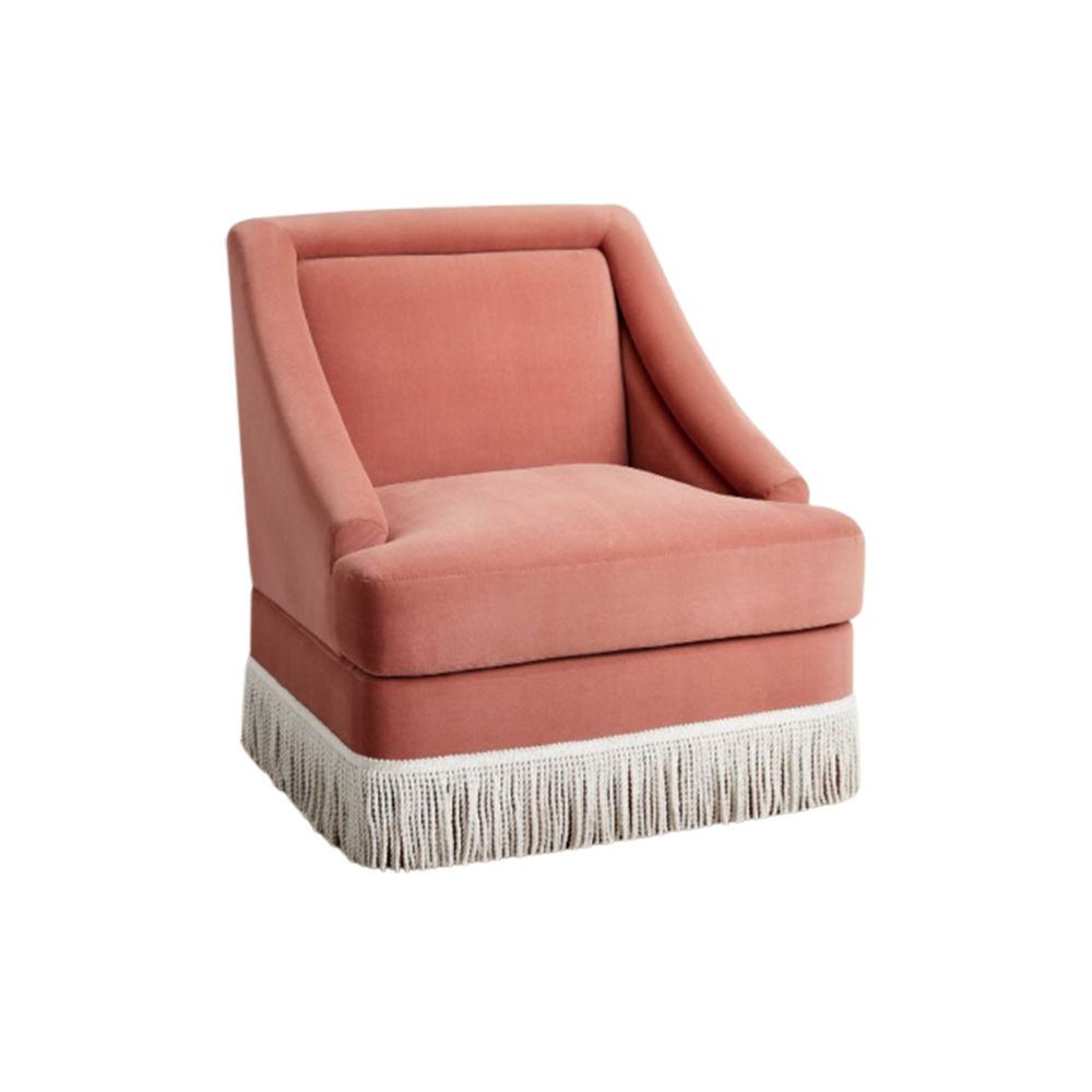 Pink Velvet Fringe Accent Chair