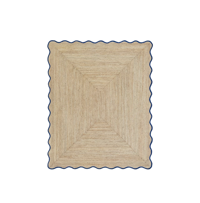 Scalloped Jute Rug - Navy Trim